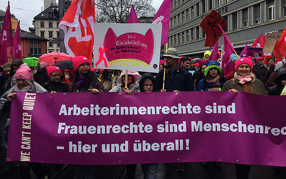 Der Women’s March steht für die gemeinsamen Kämpfe gegen den aktuellen Rechtsrutsch in der Schweiz und Europa, den Trumpismus in den USA sowie die damit verbundenen Auswirkungen für Mensch und Umwelt. Auch die Unia marschierte heute gemeinsam für die Rechte, Würde und Freiheit von allen - weltweit. Der Women’s March Zürich stellt sich in Solidarität mit den Frauenbewegungen und Frauenprotesten weltweit.