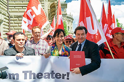 Gewerkschafter/innen, Parlamentarier/innen, Frauen- und Migrant/innenorganisationen übergaben heute, am 15. Juni 2016, dem Bundesrat einen Aufruf zur…