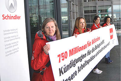 Die Unia nahm die ordentliche Generalversammlung der Schindler Holding AG im Luzerner KKL zum Anlass, gegen die Abbaupläne des Liftbauers zu…