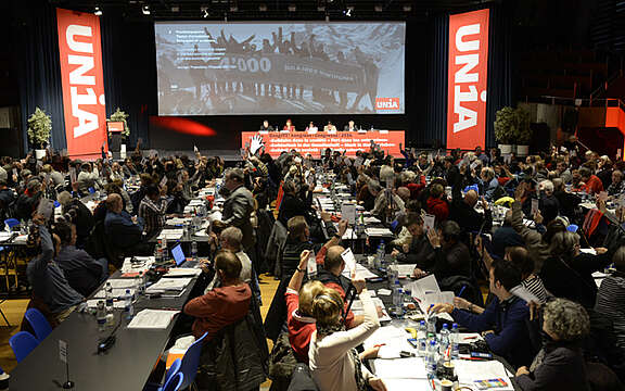 Ende Oktober hatte der ordentliche Unia-Kongress in Genf die strategischen Ziele für die nächsten vier Jahre beschlossen und die Leitungsgremien neu gewählt. An einem zusätzlichen Kongresstag in Biel haben nun die Delegierten das inhaltliche Fundament für die Arbeit in den kommenden Jahren gelegt. Zur Diskussion standen vier Positionspapiere zu wichtigen aktuellen Themen.