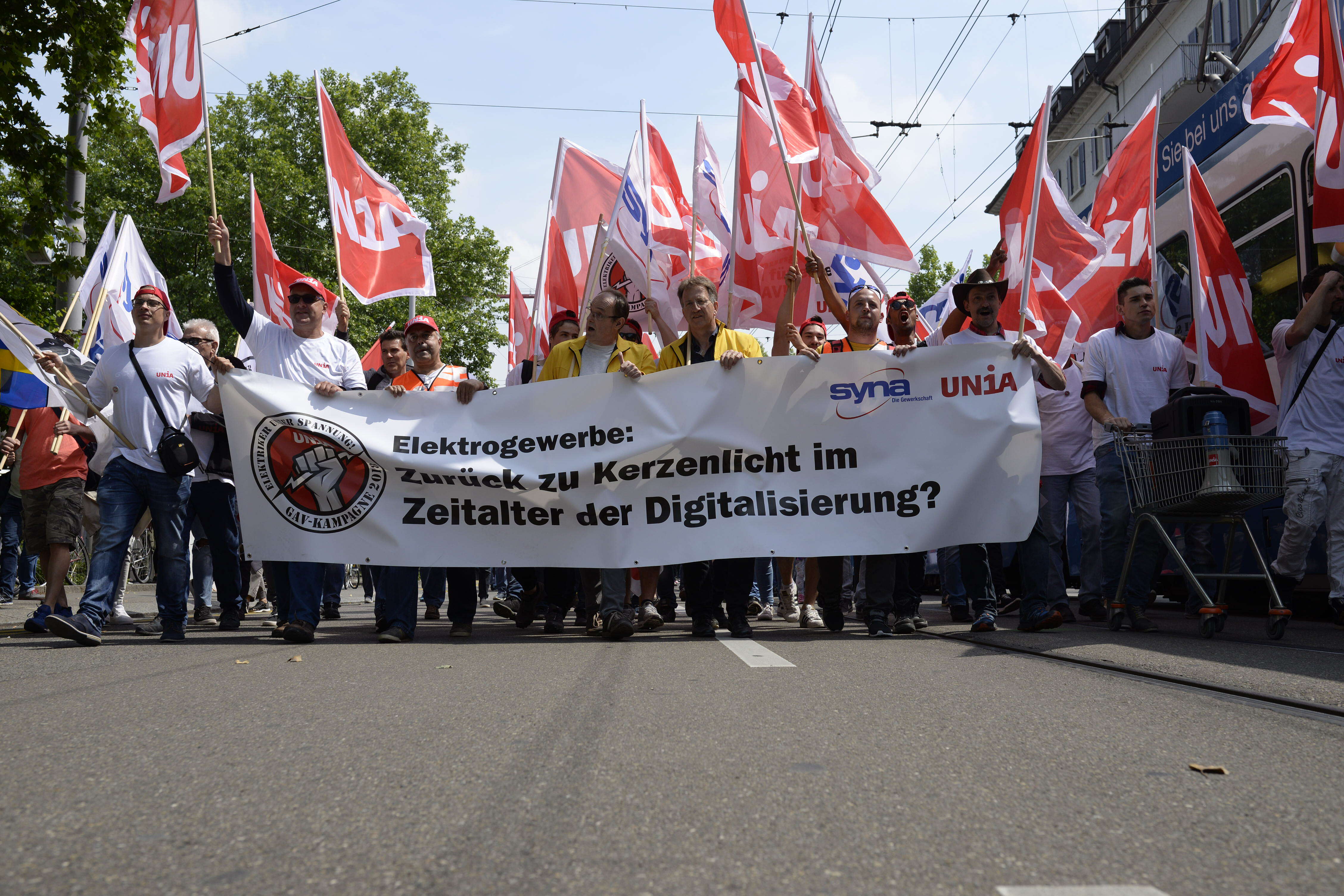 Die Kundgebungsteilnehmenden waren aus allen vier Landesteilen der Schweiz angereist, um sich beim Hauptbahnhof Zürich zu versammeln und zum Sitz des Verbands Schweizerischer Elektro-Installationsfirmen (VSEI) zu marschieren. Dort überreichten sie eine Petition mit 4474 Unterschriften. Sie fordern im Rahmen der diesjährigen Erneuerung ihres Gesamtarbeitsvertrages (GAV), dass die Arbeits- und Lohnbedingungen substantiell verbessert werden.