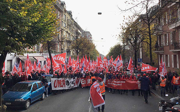 Bereits im Oktober haben mehr als 1300 Waadtländer Bauarbeiter beschlossen, den Protest auf zwei Tage auszuweiten. Eine Delegation wird morgen ihre Kollegen in Zürich in ihrem Protest unterstützen. Die Bauarbeiter wollen die Sicherung der Rente mit 60. Um das zu erreichen, nehmen sie eine Beitragserhöhung in Kauf. Im Gegenzug verlangen sie eine anständige Lohnerhöhung. Doch der Baumeisterverband erpresst die Bauarbeiter: So ist er zu dieser Lösung nur bereit, wenn die Gewerkschaften einen massiven Abbau im LMV in Kauf nehmen.