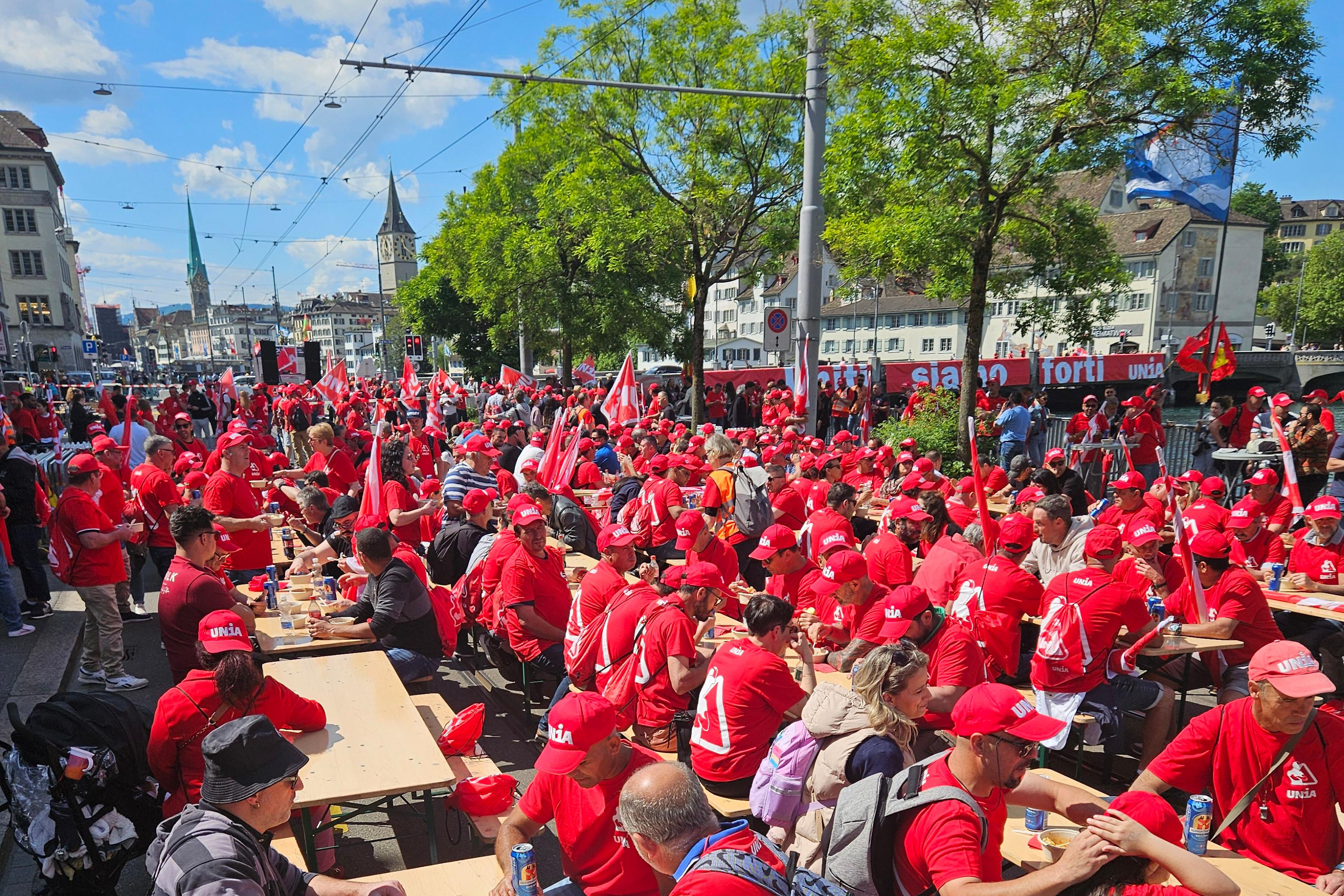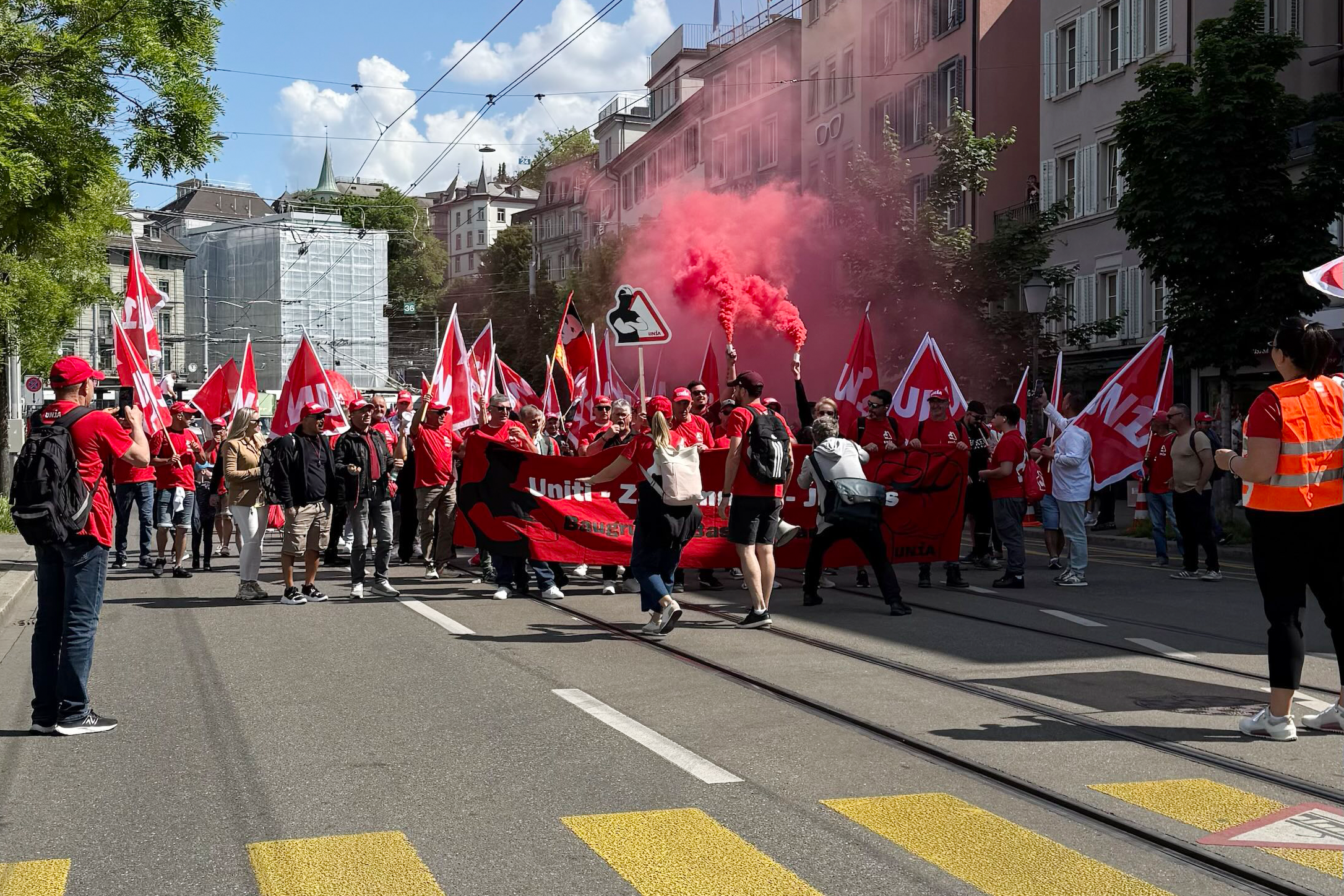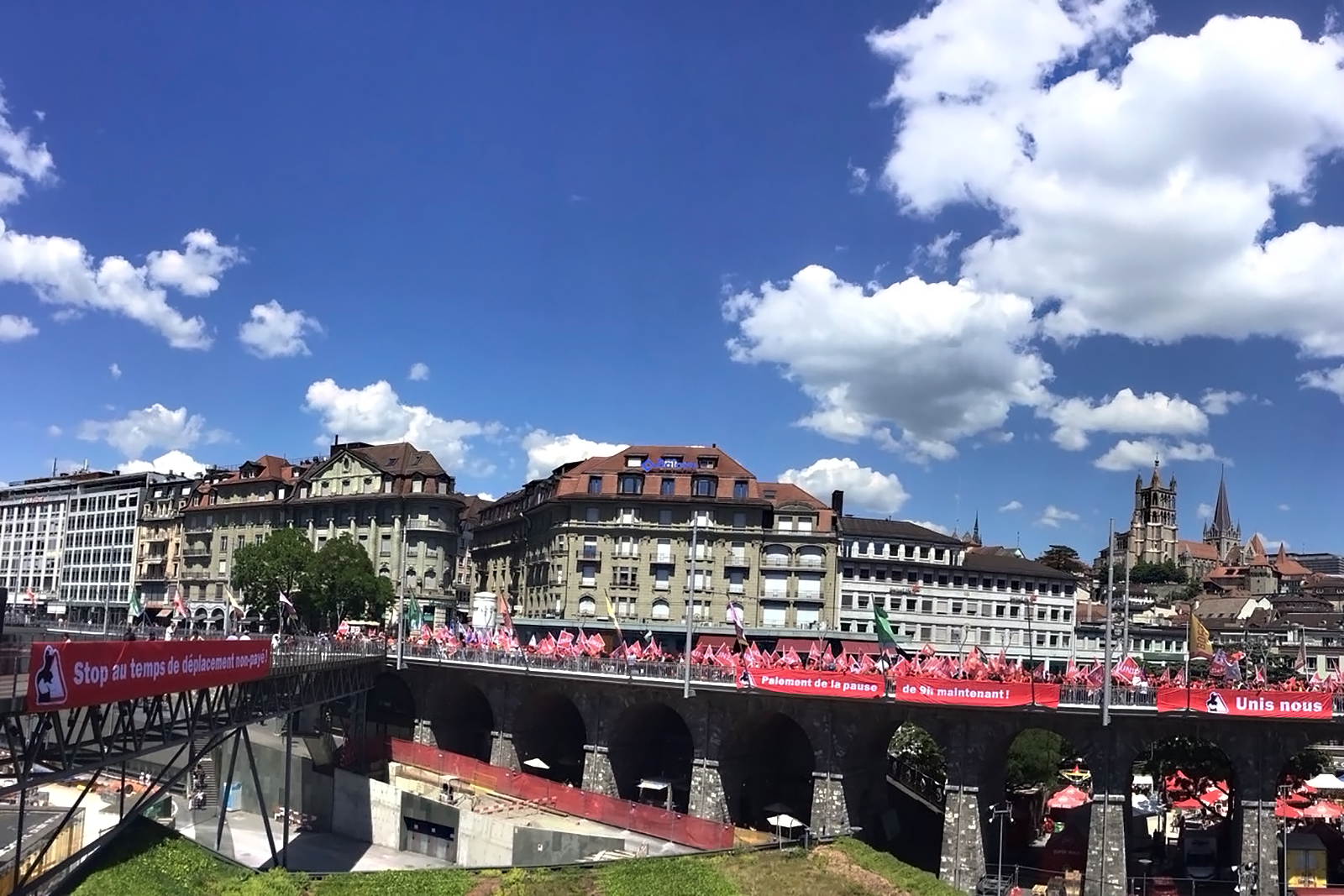 Dieses Jahr läuft der Landesmantelvertrag (LMV) des Bauhauptgewerbes aus und muss neu verhandelt werden. Bauarbeiter aus allen Teilen der Schweiz sind deshalb heute an zwei überregionalen Kundgebungen in Zürich und Lausanne auf die Strasse gegangen, um für faire Arbeitsbedingungen auf dem Bau zu demonstrieren. Im Vordergrund standen die Forderungen nach familienfreundlicheren Arbeitszeiten, einer bezahlten Pause, die Abschaffung der unbezahlten Reisezeit sowie einer Lohnerhöhung.