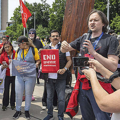 Technologischer Fortschritt muss den Arbeitern zugute kommen und darf nicht auf Kosten von Menschenrechten gehen. Das fordern Plattform-Arbeitende…