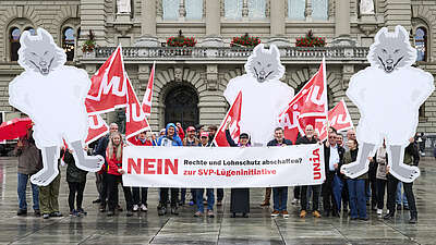 Ab heute debattiert der Nationalrat die «Nachhaltigkeitsinitiative» der SVP. Am Morgen machte die Unia mit einer Aktion auf die wahren Ziele der SVP…