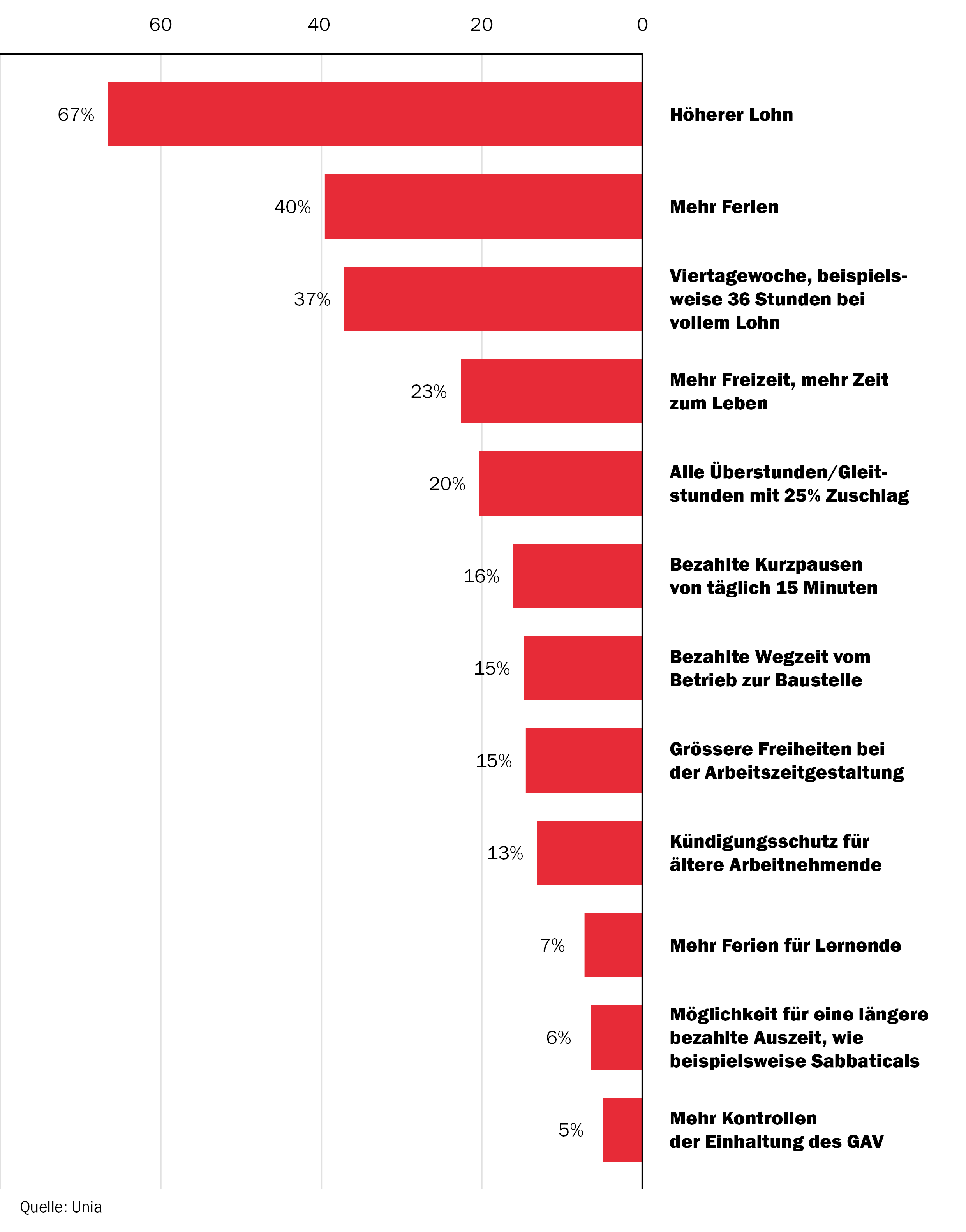Die Unia führte in den letzten Monaten eine grosse Umfrage in den Holzbranchen durch. Die Umfrageergebnisse bilden die Grundlage für anstehenden Verhandlungen zur Erneuerung des Gesamtarbeitsvertrags (GAV) Holzbau.