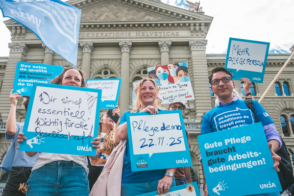 Aus diesem Grund rufen die Verbände und Gewerkschaften des Gesundheitspersonals zu einer Kundgebung auf. Am 22. November findet in Bern eine Grossdemo statt, um vor den wichtigen Debatten im Parlament den Politiker:innen aufzuzeigen, dass es dringen Massnahmen braucht. Vier Jahre nach der Abstimmung muss die Initiative – endlich – vollständig umgesetzt werden: für bessere Arbeitsbedingungen und für eine gute Pflege und Betreuung.