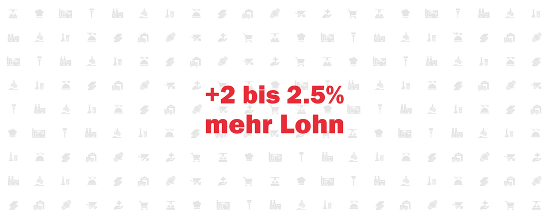 • Erhöhung der Effektiv- und Mindestlöhne um 2 bis 2,5 Prozent fĂĽr alle.