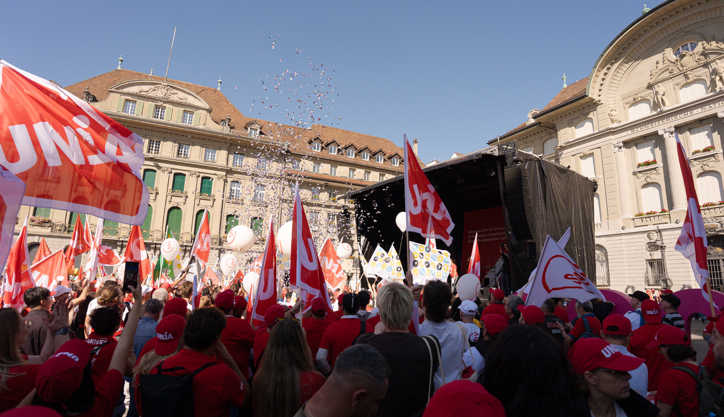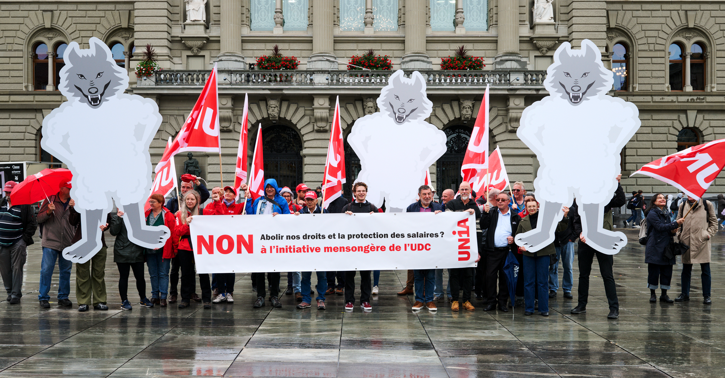 Avec une action sur la Place fédérale, Unia a dénoncé l’initiative mensongère de…