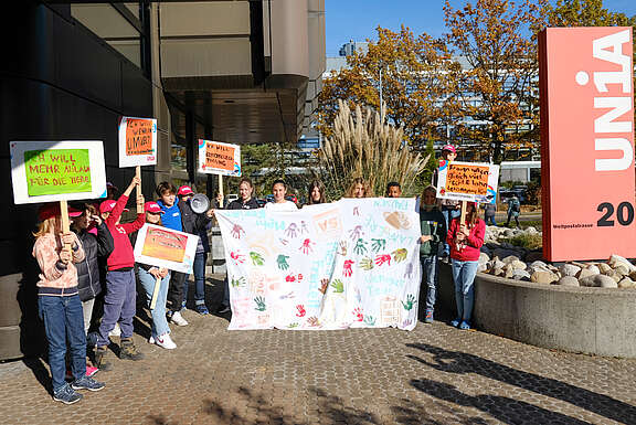 Après une visite du bâtiment, les enfants ont discuté de leurs revendications, puis ont peint des banderoles et des panneaux en groupes. Ensuite, ils se sont rendus à la cafétéria pour une manifestation, puis pour le repas de midi. Les parents sont maintenant censés répondre à des revendications telles que "plus d'argent de poche" ou "moins de devoirs".