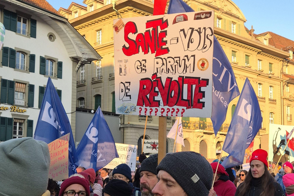 Personnel de santé, personnes âgées, patient-e-s, payeurs et payeuses de primes, organisations féministes: les manifestant-e-s ont montré que la solidarité pour les conditions de travail du personnel peut rassembler tous les pans de la population, car la santé et l’accès à des soins de qualité concernent tout le monde.