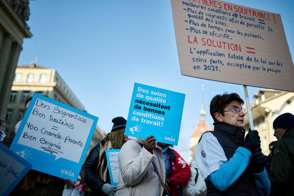 L’élan de solidarité a été immense: d’abord, avec la prise de parole de la réalisatrice suisse Petra Volpe. Le personnel de santé lui a remis un prix d’honneur pour son film engagé «En première ligne». Puis, grâce à la présence en nombre de retraité-e-s: en effet, la question des soins et de l’accompagnement de longue durée est un véritable enjeu de société. Elle doit devenir une priorité de l’agenda politique, en particulier en raison du vieillissement de la population.