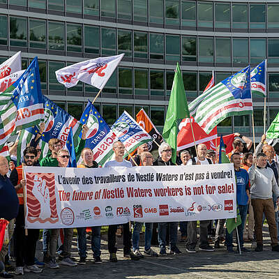 A Vevey, une manifestation a réuni des délégués syndicaux des nombreux sites européens de Nestlé Waters pour dénoncer le projet de vente de cette…
