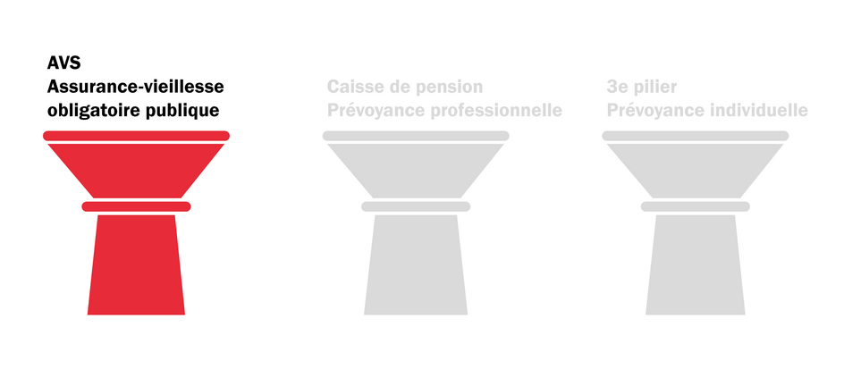 L’assurance-vieillesse et survivants (AVS) est le régime de retraite public. Elle est obligatoire. Elle couvre les besoins fondamentaux et se fonde sur le principe de la solidarité. Autrement dit: celui qui gagne beaucoup verse des cotisations plus élevées, car elles sont prélevées sur l’entier du salaire.