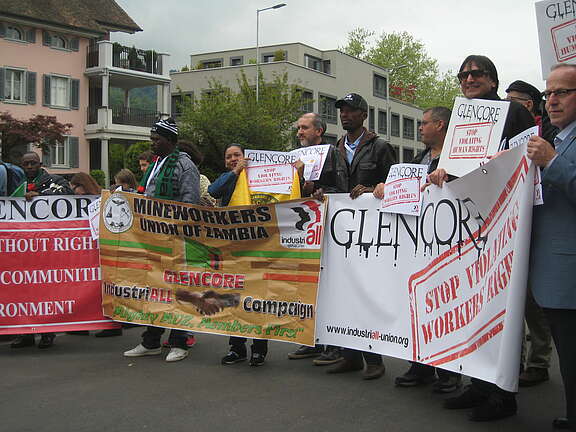 Les syndicats demandent que Glencore acceptent des négociations au niveau mondial, afin de garantir dans tous les pays le respect des droits humains, de la protection des droits des travailleurs et des travailleuses ainsi que des normes environnementales.