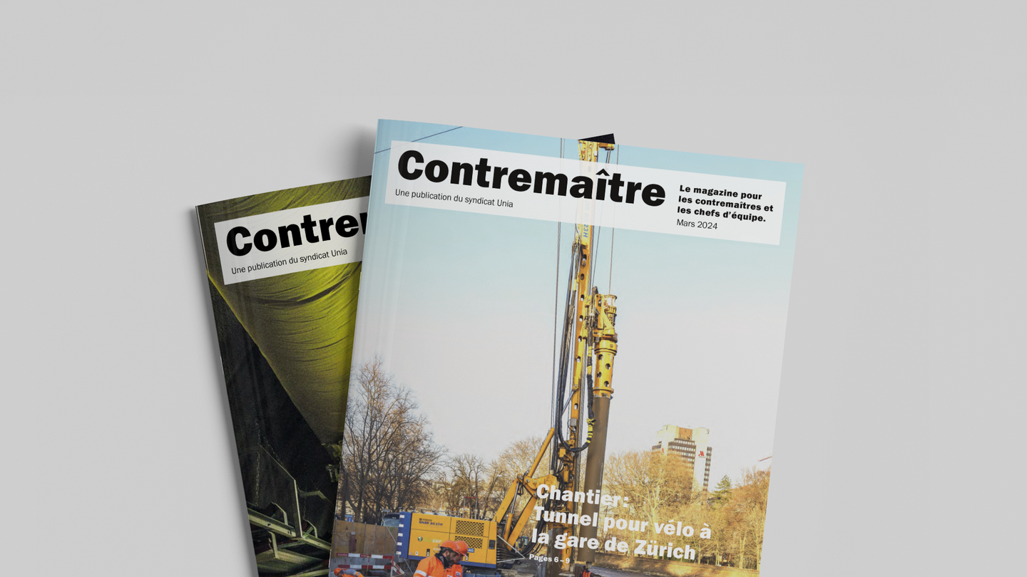 Contremaître est notre magazine pour les contremaîtres et les chefs d’équipe. Il paraît deux fois par an. Dans Contremaître, tu trouves des mises à jour sur la convention nationale, celle des contremaîtres et la retraite anticipée, le portrait d’un chantier de prestige et des articles sur la numérisation dans la construction, des méthodes de travail innovantes et les nouveaux matériaux de construction. Remplis maintenant le formulaire de commande et tu recevras le magazine gratuitement par la poste!