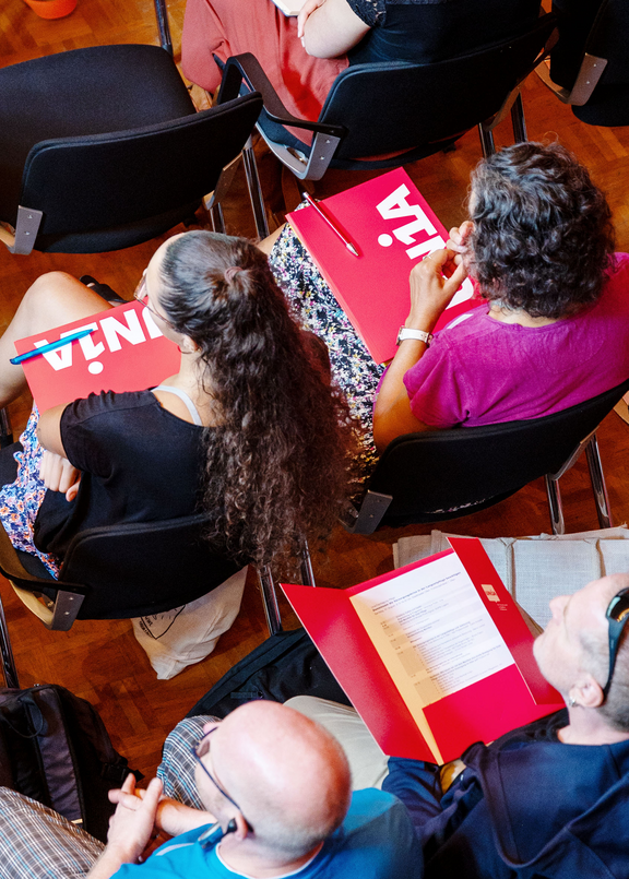 Chaque année, les membres d'Unia qui travaillent dans les professions de la santé se réunissent en conférence de branche. Ensemble, nous prenons des décisions importantes pour défendre nos droits et définir nos revendications.