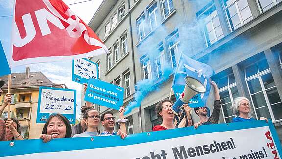 Oltre al nostro impegno per CCL moderni, facciamo pressione per una legislazione sociale e politica avanzata. Lanciamo iniziative e campagne politiche e organizziamo associati e associate nelle loro aziende. Se necessario, facciamo sentire la nostra voce in strada.