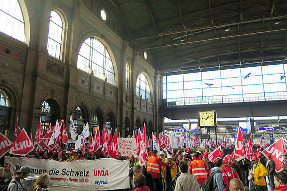 Dopo che 3000 lavoratori edili hanno protestato ieri in Ticino, oggi sono stati i loro colleghi della Svizzera tedesca ad esprimere il proprio malcontento. Alle azioni di protesta di martedì mattina hanno preso parte oltre 3000 lavoratori edili. Delegazioni provenienti da tutta la Svizzera tedesca si sono date appuntamento alla stazione centrale di Zurigo per un pranzo comune.