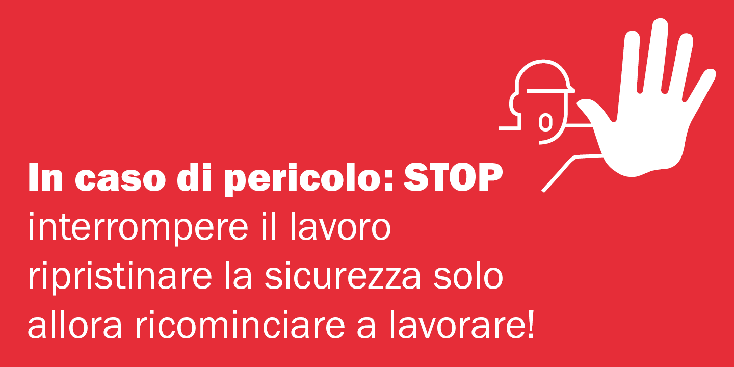 In collaborazione con associazioni dei datori di lavoro e associazioni di categoria, progettisti e sindacati, la SUVA ha redatto la Charta della sicurezza. Le aziende firmatarie si impegnano a garantire la tolleranza zero nell'ambito della sicurezza sul posto di lavoro e il diritto di «dire stop».