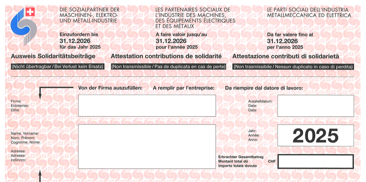 Si prega di presentare l’attestazione entro il 31 dicembre! Gli affiliati Unia possono consegnare l’attestazione di persona presso il segretariato Unia competente o inviarla per posta (si prega di indicare le coordinate del conto postale o bancario).
