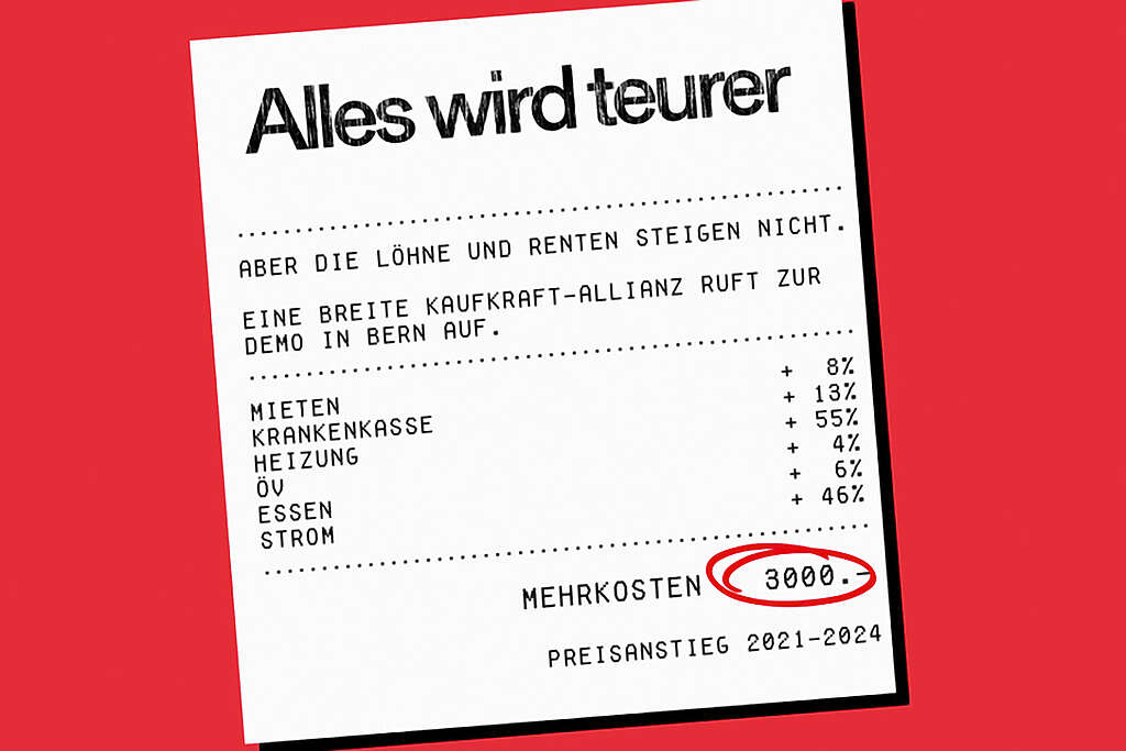 Deshalb organisieren die Unia und der SGB eine grosse nationale Kundgebung für mehr Lohn und Kaufkraft.